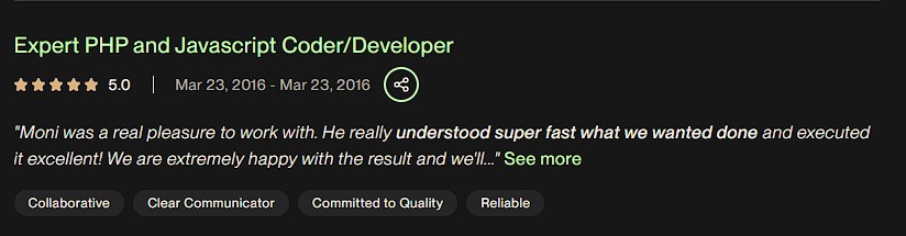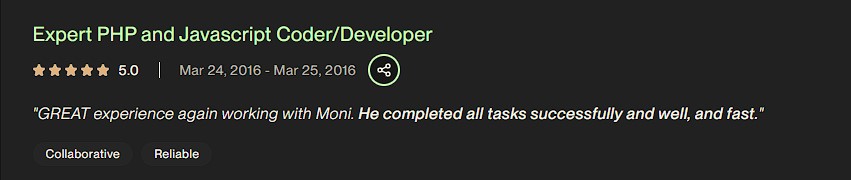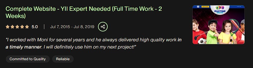 - • Top Rated Upwork Freelance - Full-stack Developer (Feb 2014 - Jan 2022)